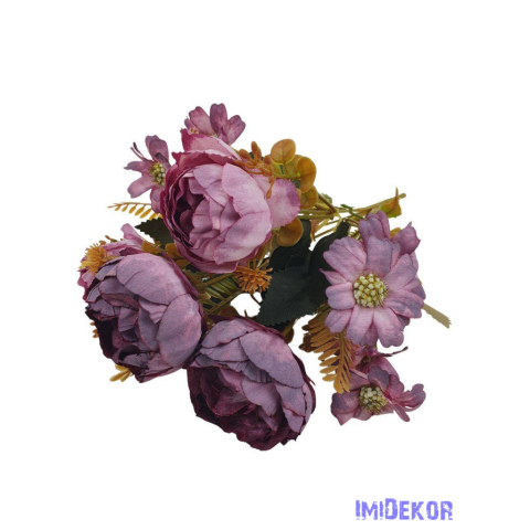 Boglárka 4 fejes selyem csokor 30cm - Antik Lila dekorációs kellék 1 kép