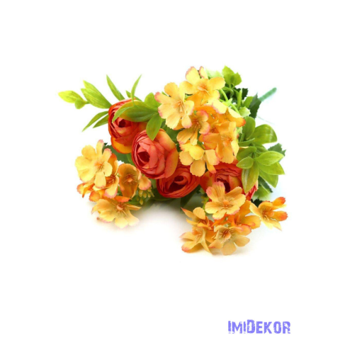 Boglárka + kis virágos selyem csokor 30cm 272 - Narancs