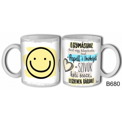 Feliratos kerámia bögre, A papát és unokáját a szívük köti össze 3 dl Befoglaló mérete: 12 x 8 x 9,5 cm