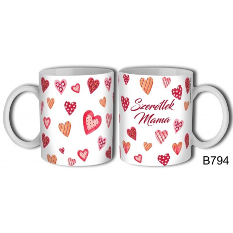 1 kép Bögre, Anyák napja, szeretlek Mama, mintás szívecskék