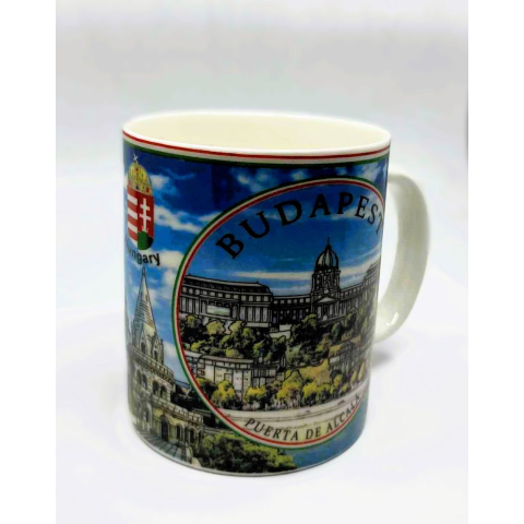 Bögre Budapest felirattal és Parlament mintával. Ideális ajándék budapestieknek, turistáknak vagy bárkinek, aki rajong a magyar főváros szépségéért. Használhatod kávéhoz, teához vagy akár dekorációként is.