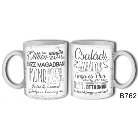 Feliratos bögre, családi szabályok 3 dl Anyaga: kerámia Befoglaló mérete: 12 x 8 x 9,5 cm