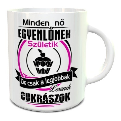 Bögre cukrászoknak, ajándék cukrászoknak. Szakmás ajándék hivatásos és hobbi cukrászoknak. Köszönd meg a sok szép és finom süteményt egy ilyen bögrével cukrász barátnődnek, családtagodnak. Rendelj mellé díszdobozt is! Egyedi nyomtatású bögréink kiváló
