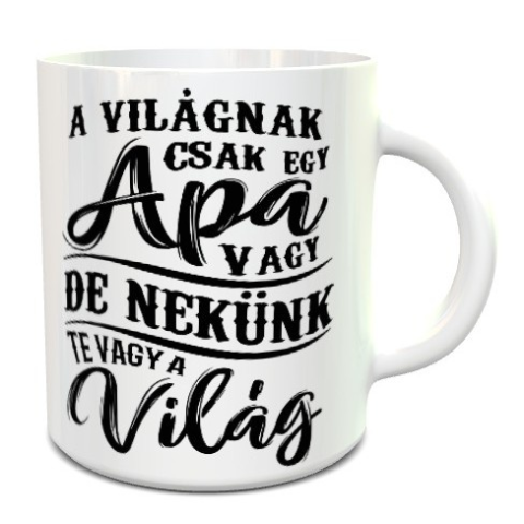 Bögre édesapáknak, a világnak csak egy apa vagy bögre. Népszerű feliratos bögre apáknak ajánljuk minden alkalomra, amikor édesapánkat szeretnénk köszönteni, vagy csak emlékeztetni arra, hogy a Világon csak egy apa vagy, de nekünk Te vagy a világ! Egye