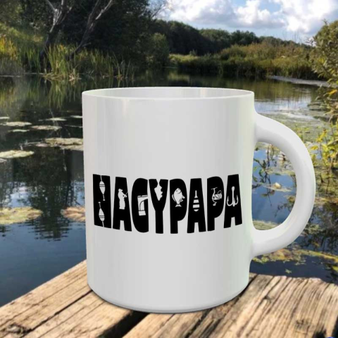 Bögre pecás nagyszülőnek, nagypapa. Ajándék nagypapának, akinek az élete a halak és szabadidejében, ha teheti horgászik. Lepd meg vele születésnapján vagy névnapján, hiszen egy ilyen bögre egy igazi horgász nagypapa elengedhetetlen kiegészítője. Kerámia,