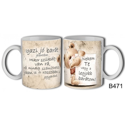Bögre, Igazi jó barát, Nekem te vagy a legjobb barátom (471) 3 dl Anyaga: kerámia Befoglaló mérete: 12 x 8 x 9,5 cm
