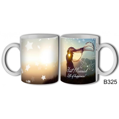 Bögre, Just Married, esküvői pár és galambok 3 dl Anyaga: kerámia Befoglaló mérete: 12 x 8 x 9,5 cm