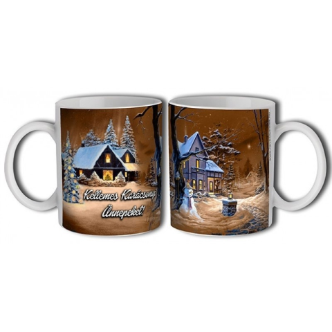 Karácsonyi hangulatot ábrázoló porcelán bögre Űrtartalom: 3 dl Anyaga: kerámia Befoglaló mérete: 12 x 8 x 9,5 cm