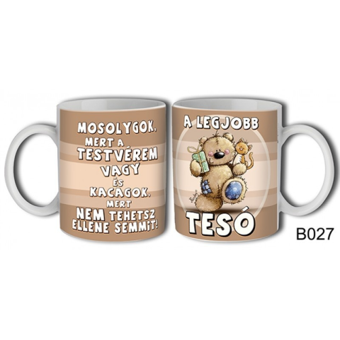 Bögre, legjobb tesó, maci 3 dl Anyaga: kerámia Befoglaló mérete: 12 x 8 x 9,5 cm