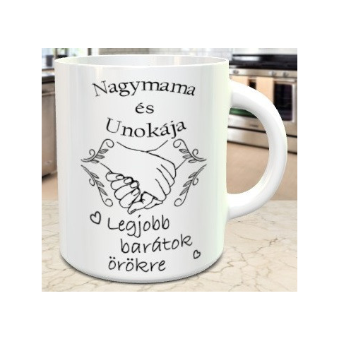 Bögre nagyszülőnek, nagymama és unokája legjobb barátok örökre, bögre a legjobb nagymamának és unokáknak. Tökéletes páros bögre születésnapra, karácsonyra vagy anyák napjára ajándékként, amivel elmondhatod mennyit is jelent számodra nagymamád, milyen külö