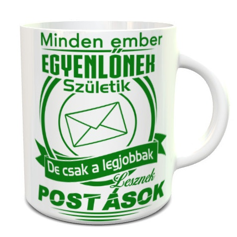Postás bögre, legjobbak lesznek postások. Minden ember egyenlőnek születik, de csak a legjobbak lesznek postások, amennyiben egyet értesz ezzel az állítással és szeretnél adni valami ajándékot annak a bizonyos postásnak nincs is más dolgod, mint válaszd
