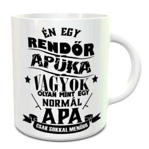 Bögre rendőr apukáknak, ajándék rendőröknek. Én egy rendőr apuka vagyok, olyan mint egy normál apa csak sokkal menőbb feliratos bögre apák napjára, születésnapra a legbátrabb apukáknak, akik legjobbak szakmájukban és amellett legjobb apukák is. Egyedi