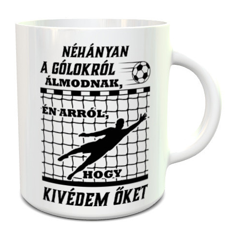Bögre sportolóknak, ajándék kapusoknak. Feliratos bögre sportolóknak, kapusoknak. Néhányan a gólokról álmodnak, én arról, hogy kivédem őket felirattal. Ajándékozz egy ilyen bögrét focis, kézilabdás családtagodnak, ismerősödnek. Minta színét is te válasz