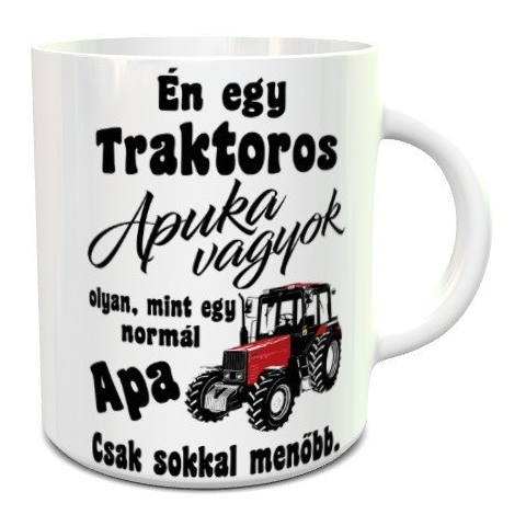Bögre traktorosoknak, traktoros apuka vagyok. Én egy traktoros apuka vagyok, olyan mint egy normál apa csak sokkal menőbb feliratos bögre. Meglepetés férfiaknak, a mezőgazdasági gépek szerelmeseinek. Rendelj hozzá díszdobozt is. Vagy akár erős anyagú zomá