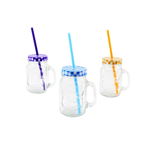 Kockás fémtetős, vidám üvegbögre szívószállal ellátva. Kiváló minőségű, masszív, erős anyagból készült, teához, limonádéhoz, gyümölcsléhez vagy akár forró csokihoz és egyéb italhoz is használható. Kényelmes fogantyúja lehetővé teszi a biztonságos fogást.