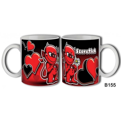 Bögre, Valentin nap, ördög, szívvel és virággal, szeretlek 3 dl Anyaga: kerámia Befoglaló mérete: 12 x 8 x 9,5 cm