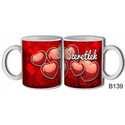 Bögre, Valentin nap, piros szívek, szeretlek 3 dl Anyaga: kerámia Befoglaló mérete: 12 x 8 x 9,5 cm