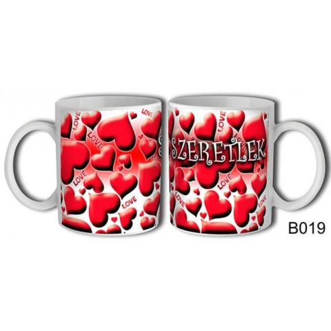 Bögre, Valentin nap, szeretlek, love, sok kis piros szív 3 dl Anyaga: kerámia Befoglaló mérete: 12 x 8 x 9,5 cm