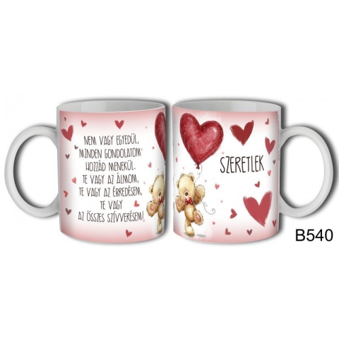 Bögre, Valentin nap, szeretlek, nem vagy egyedül, maci 3 dl Anyaga: kerámia Befoglaló mérete: 12 x 8 x 9,5 cm