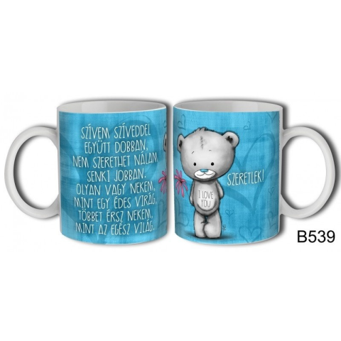 Bögre, Valentin nap, szeretlek, szívem szíveddel együtt dobban, maci 3 dl Anyaga: kerámia Befoglaló mérete: 12 x 8 x 9,5 cm