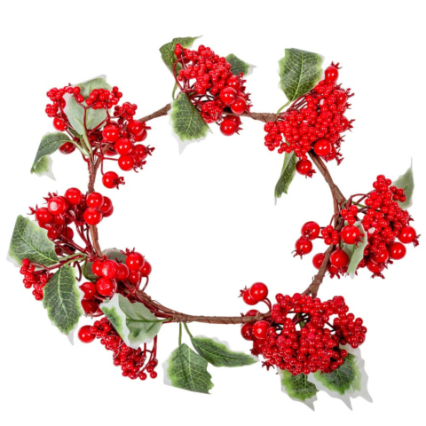 Élénk piros bogyókkal és zöld levelekkel díszített karácsonyi ajtódísz. Klasszikus, mégis látványos kiegészítő az ünnepi dekorációhoz, amely meleg hangulatot visz otthonod bejáratához. A bogyós ajtódísz 36 cm a természet ihlette, mégis vidám karácsonyi