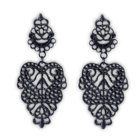 Elegáns bohém csipke fülbevaló fekete színben, gótikus stílusban, ideális különleges alkalmakra és mindennapi viseletre
