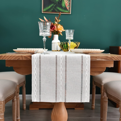 Fedezd fel a bohém csipkés zsákvászon asztalfutó varázsát, amely tökéletes kiegészítője lehet bármely otthoni enteriőrnek. Ez az asztalfutó nemcsak a rusztikus stílus szerelmeseinek kedvence, hanem azoknak is, akik szeretnék egy csipetnyi vintage hangulat