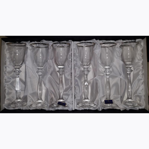 Bohemia kristály pohár ezüstszínű díszítéssel, likőrös, 6db, 416067 ajándéktárgy 1 kép