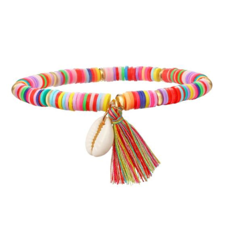Egyedi kagylós bokalánc színes medálokkal és bojt díszítéssel. Tökéletes viselet nyári hangulathoz, strandoláshoz vagy esti bulikra