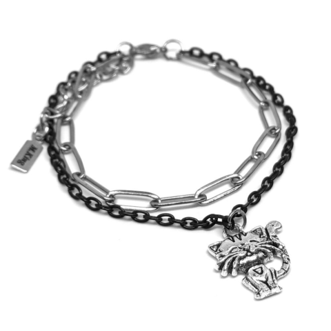 1 kép Boldog Cica charmos dupla karkötő, ezüst-fekete színű