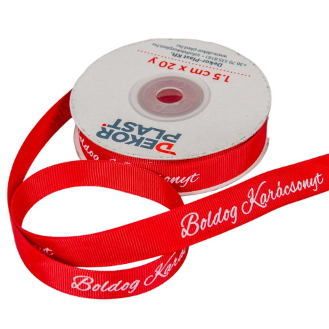 1 kép Boldog Karácsonyt feliratos ripsz szalag bordó 1,5cmx20y