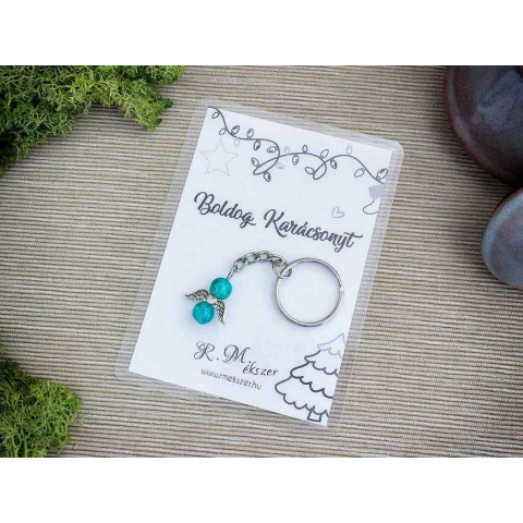 Boldog Karácsonyt pávakék angyal medálos kulcstartó kulcstartó 1 kép