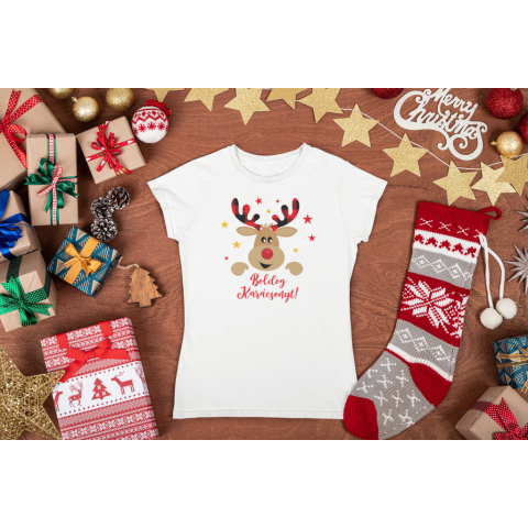 1 kép Boldog Karácsonyt szarvasos fehér póló
