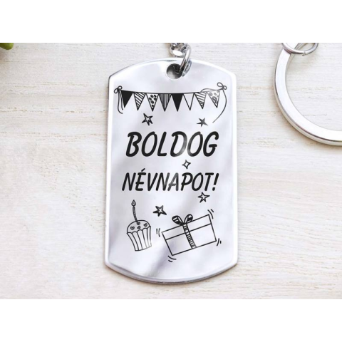 Boldog névnapot acél medálos kulcstartó kulcstartó 1 kép