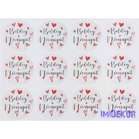 1 kép Boldog névnapot matrica 24db/A4 lap - Sok szivecskés