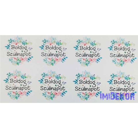 1 kép Boldog szülinapot matrica 24db/A4 lap - Zöld virágos