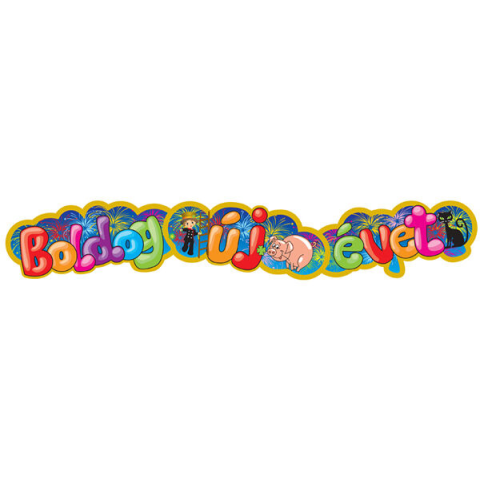Boldog új évet fűzér. Anyaga: papír. Hossza: 75 cm, magassága 10 cm.