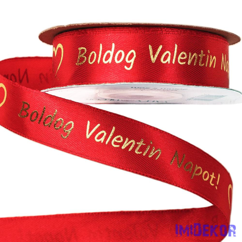 Boldog Valentin napot! arany feliratos szatén szalag 20mm x 20m - Piros
