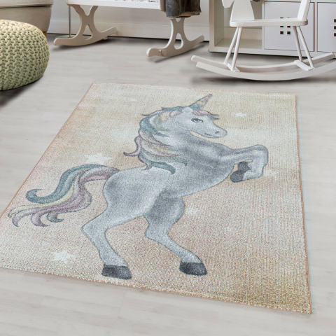 Vidám Unikornis Gyerekszőnyeg - 140x200 cm 🦄 Varázsolj vidámságot a gyerekszobába ezzel a bájos unikornis mintás szőnyeggel! A puha és kényelmes szőnyeg tökéletes hely a játékhoz és a pihenéshez. Főbb jellemzők: Vidám design: Az aranyos unikornis m...