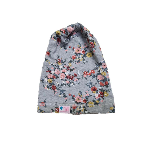 1 kép Bolyhos téli sapka, virág, rózsaszín-szürke