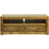 Bombay keleties stílusú tömör mangófa világosbarna 2 fiókos TV asztal 55x140x45cm bútor termékleírás