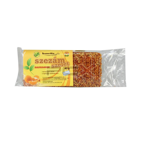 Glutén, tej és szójamentes szezám szelet. Az egészséges táplálkozás része. Kiszerelés: 42 g Összetétel: Szezámmag (49%), glükózszirup, cukor, természetes ízesítő.Átlagos tápérték 100 g termékben: Energia: 2101 kJ (501 kcal) Fehérje: 11,2 g Szénhidrát:
