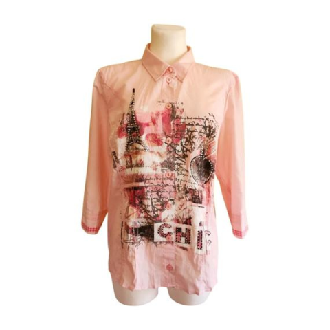 1 kép Bonita rózsaszín Párizs mintás női blúz (méret: 44/L)