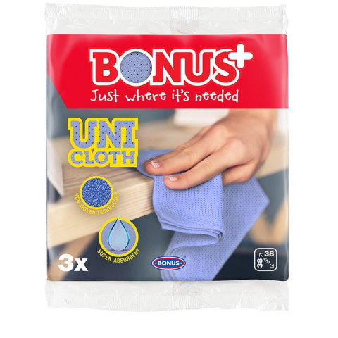 Bonus Uni kendő 38x38cm 3 darabos - Bonus Uni kendő - viszkóz és poliészter keverék - lyukacsos - magas nedvszívó képesség - 3 db / csomag - 38 x 38 cm - 16 g / db (120g/m2)