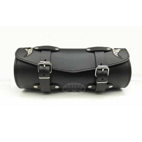1 kép Bőr motoros villatáska, kígyóbőr betéttel