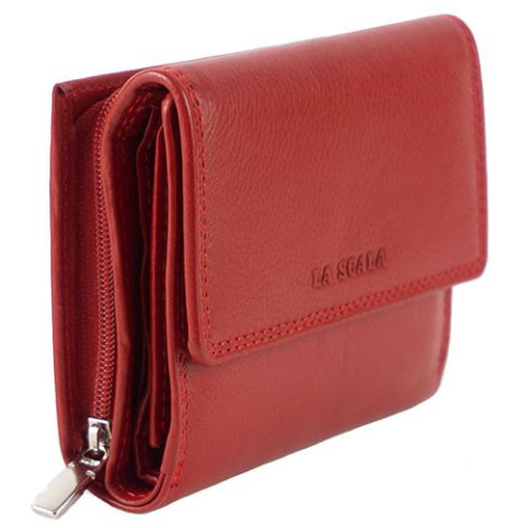 1 kép Bőr női kisebb méretű fedeles piros pénztárca LA SCALA