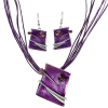 1 kép Bőr nyaklánc szögletes zománc medállal és fülbevalóval, lila