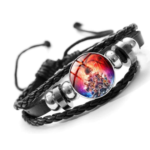 Stranger Things ajándék bőr karkötő rajongóknak, állítható hosszúsággal és üveg medállal. Különleges villámos dizájn, hogy a sorozat varázsát mindig magadnál tartsd