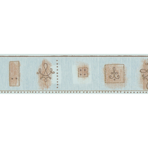 Modern, romantikus stílusú bordűr kék színben, barna mintával.