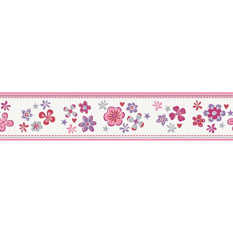 Rózsaszín virágos gyerek bordűr.Illesztés: toldat nélkül.Maradék nélkül szárazon lehúzható.